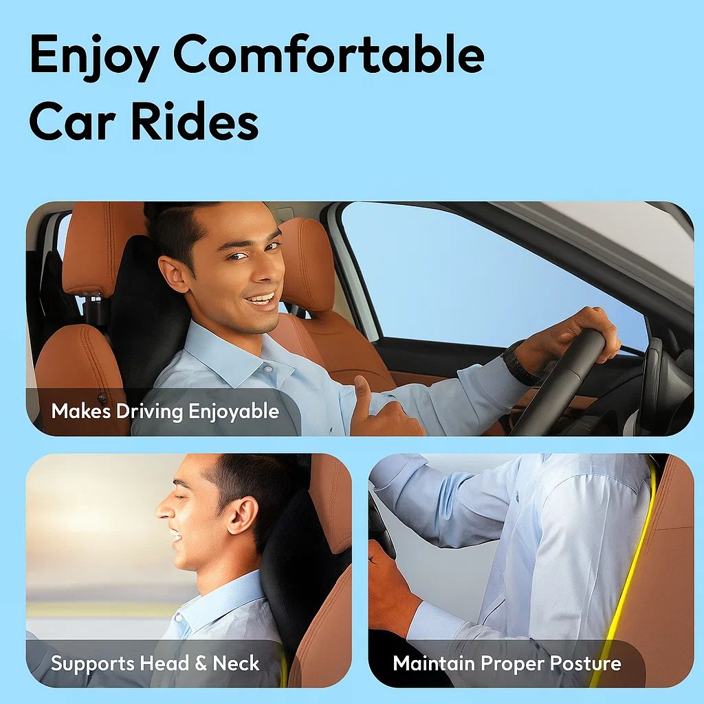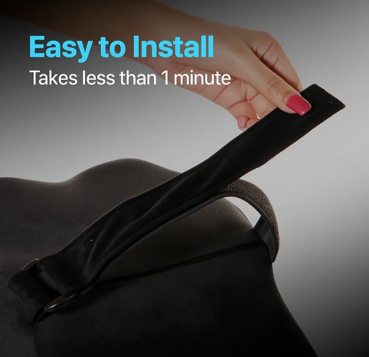 The adjustable strap grips any headrest securely without requiring a single tool.