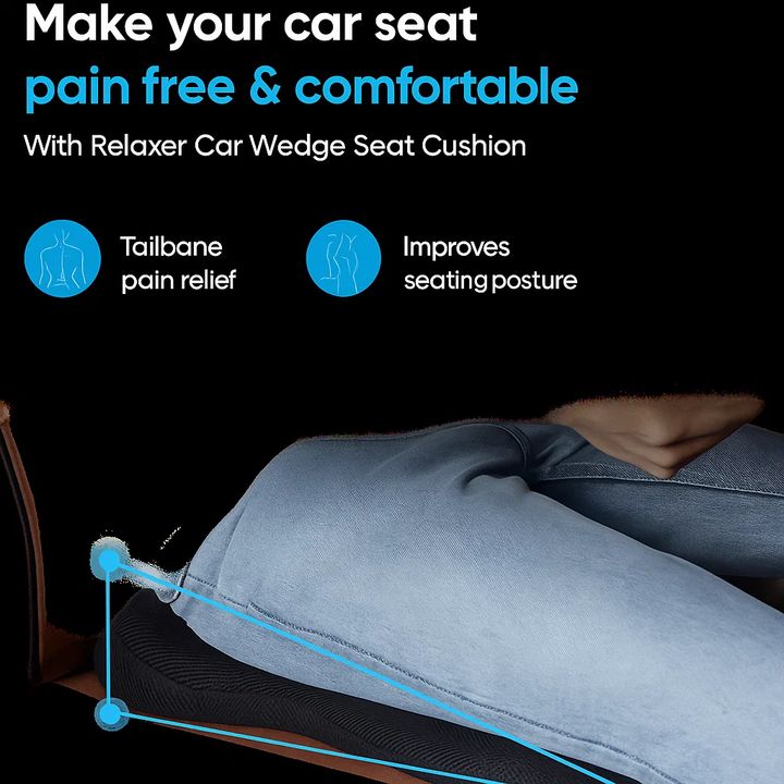 The ergonomic car wedge pillow features a coccyx cutout and wedge-shaped design to reduce pressure on the hips and tailbone, providing enhanced comfort during long drives. Made with Hi-Per foam and a breathable 3D mesh cover, it ensures optimal support and airflow for lasting relief while driving.