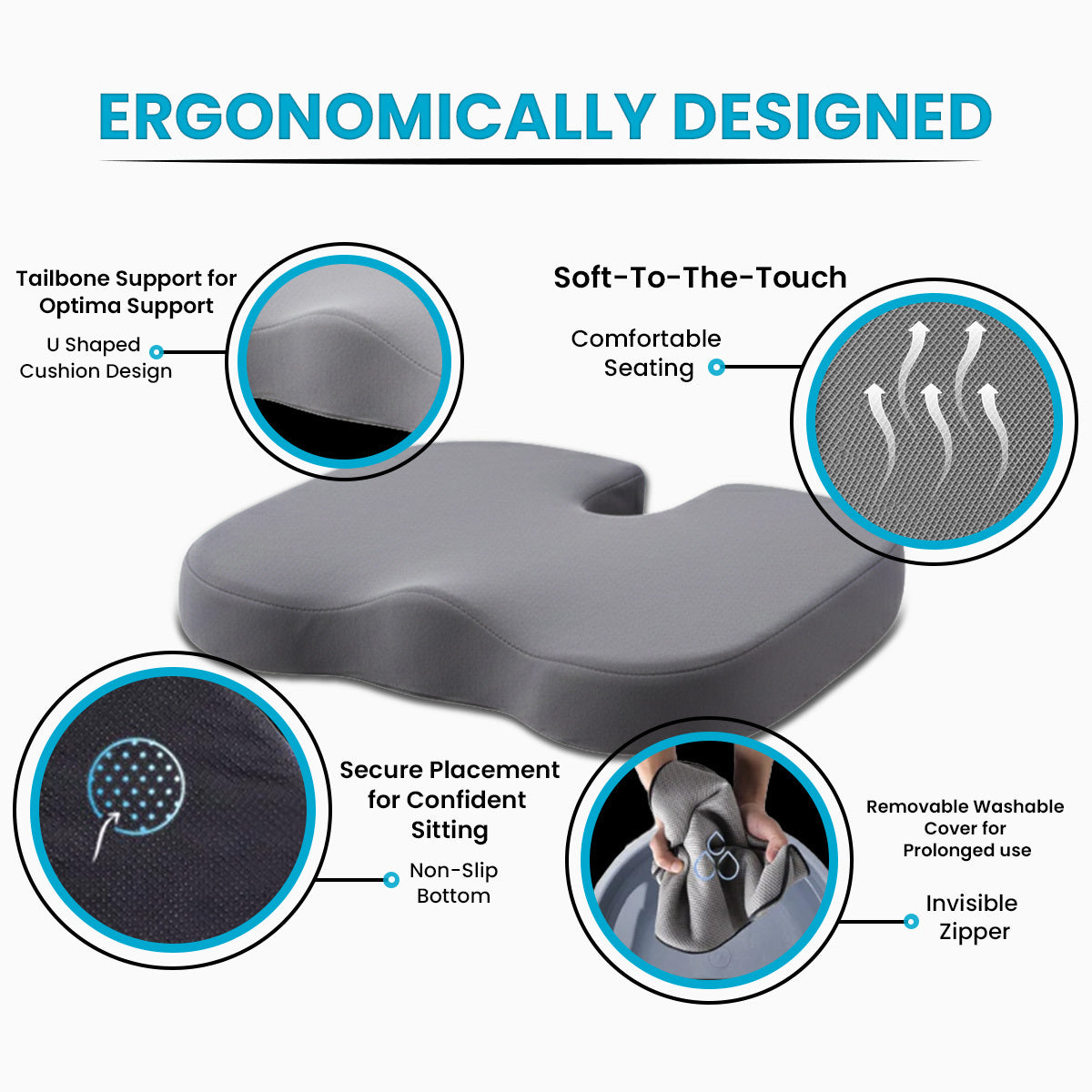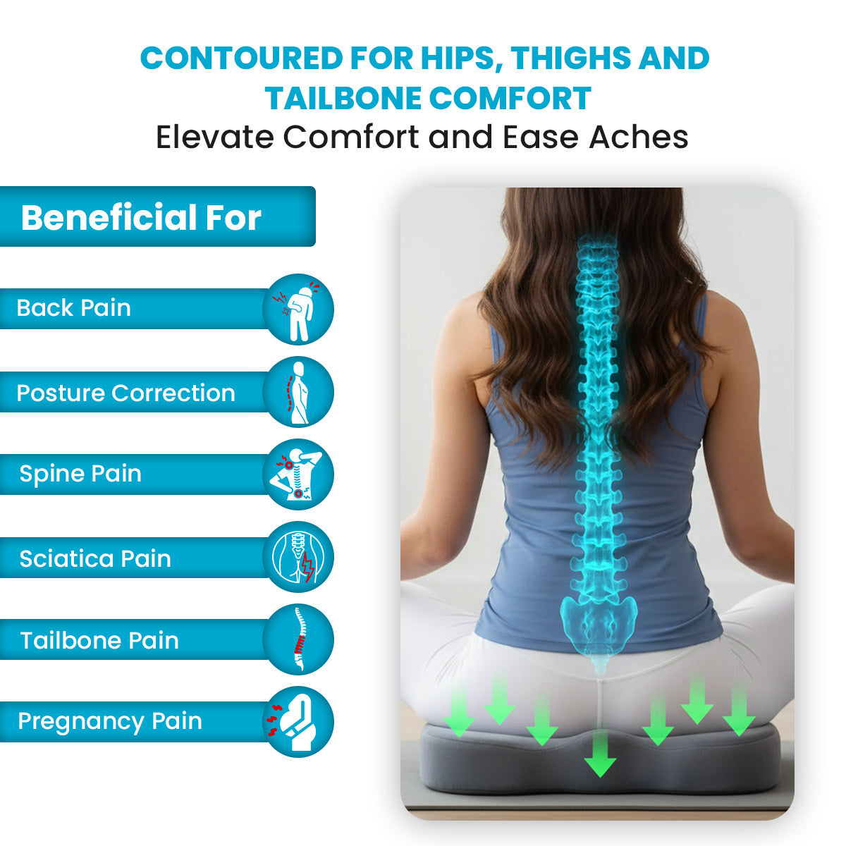 An ergonomic design that effectively targets pressure points to soothe and relieve tailbone pain.